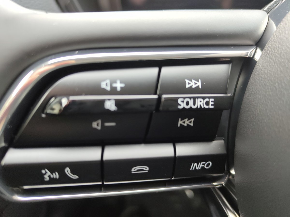 - Lenkradbedientasten für Audioquelle und Lautstärke, Freisprechanlage und Geschwindigkeitsregelanlage
